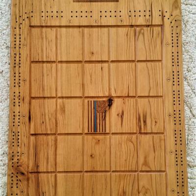 Flag Cribbage Board with Army, Navy, Air Force, Marines, Coast Guard, and National Guard